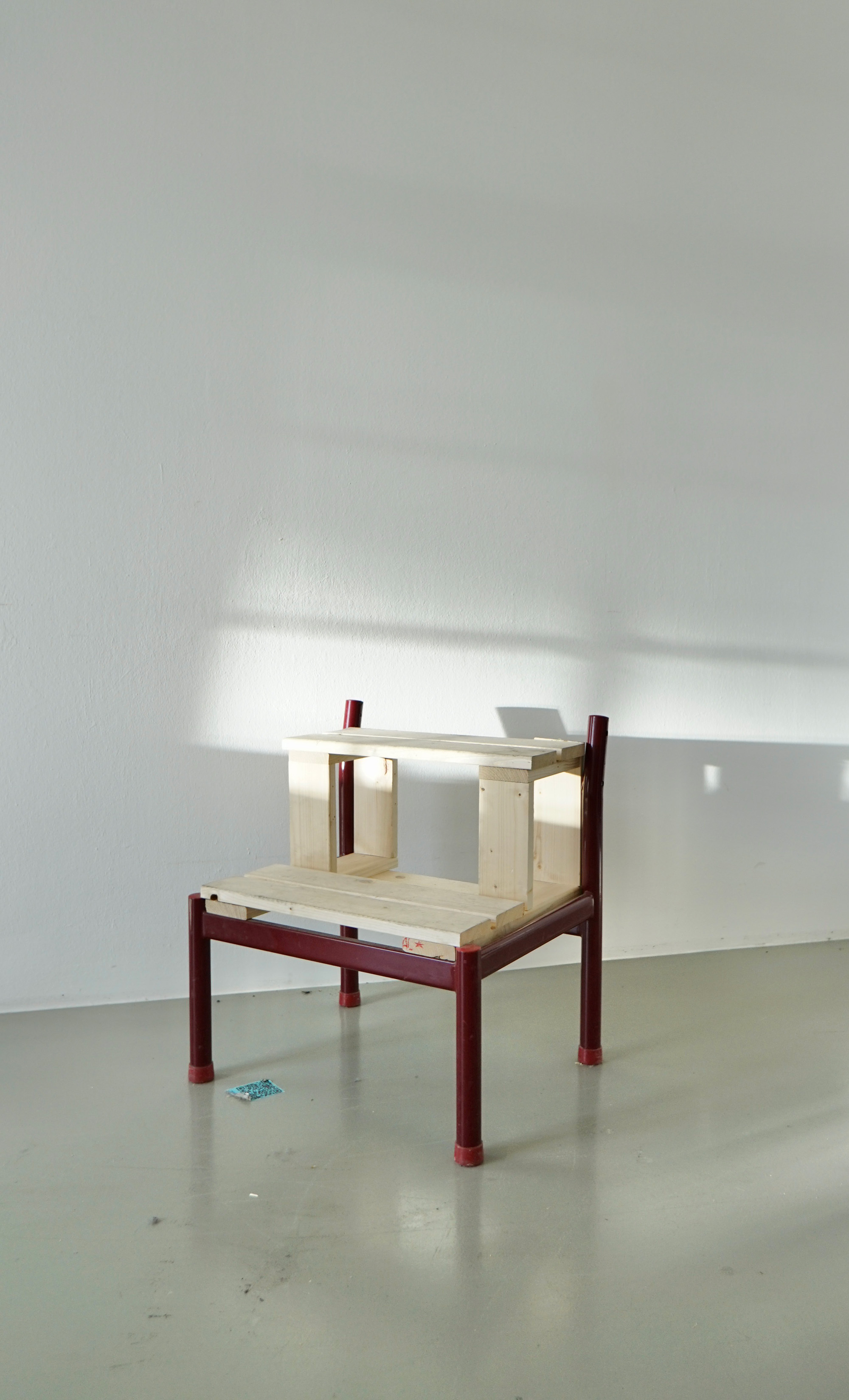 school chairs and wood / 100 x 50 x 70 cm / 39.4 x 19.7 x 27.6 in